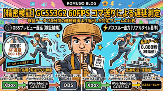 AVerMediaのキャプチャーボード「GC553G2」を使用して、パススルー出力とOBSプレビュー画面の遅延(ラグ)がどれくらいあるのかを徹底検証しました。接続配線図や60FPSでのコマ送り検証結果など、ゲーム実況や配信で気になる遅延問題のリアルな数値を解説します。